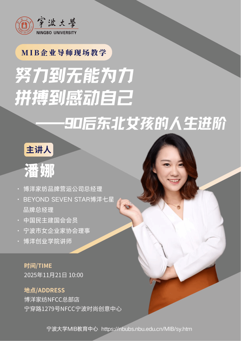 在主题分享环节,潘总以“努力到无能为力,拼搏到感动自己”为题,结合自身从实习生成长为品牌总经理的历程,讲述了在不断学习、勇于突破中实现个人与企业共同发展的故事。她鼓励同学们做好职业规划,敢于尝试新领域,在实践中锻炼商品创新与综合管理能力。