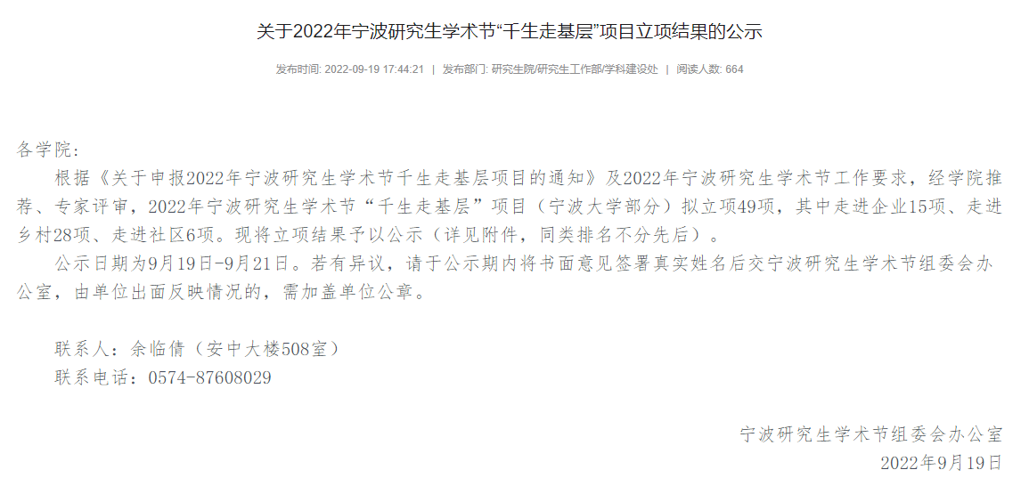 国际商务专业硕士王伟琴、张梦迪担任负责人的两个项目入选2022年宁波研究生学术节“千生走基层”之“走进企业”类别项目。