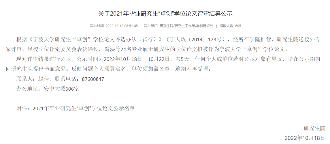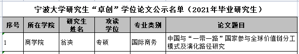 日前,色情av影片 研究生院公示了“2021年毕业研究生‘卓创’学位论文评审结果”,国商专业翁泱同学获此殊荣。