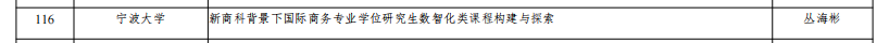 日前,我校MIB硕士点教师丛海彬教授申报的《数字贸易学》获批2022 年浙江省优秀研究生课程,申报的“新商科背景下国际商务专业学位研究生数智化类课程构建与探索”获批2022年浙江省“十四五”研究生教学改革项目。特此祝贺!