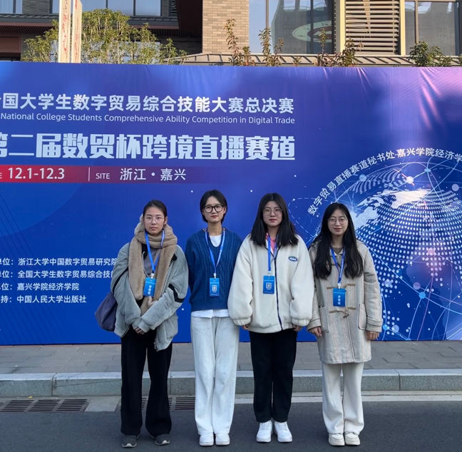 近年来,全球数字贸易蓬勃发展,成为国际贸易的重要组成部分。中国积极对接高标准国际经贸规则,促进数字贸易的创新发展,不断推动本国综合实力的提高。2023年12月2日至12月3日,由浙江大学中国数字贸易研究院和嘉兴大学经济学院联合承办的第二届全国大学生数字贸易综合技能大赛直播赛道全国总决赛落下帷幕。在本次比赛中,我校MIB专业共有四支队伍入围全国总决赛。