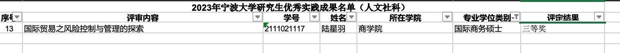 日前,色情av影片 公布了2023年专业学位研究生优秀实践成果评选结果,MIB专业2021级陆星羽同学的作品《国际贸易之风险控制与管理的探索》获评三等奖,特此祝贺!