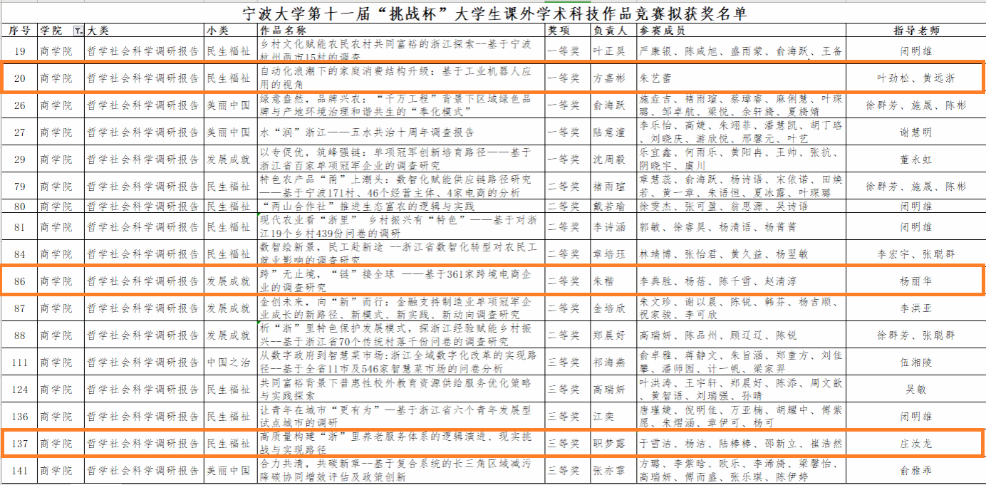我校2022级MIB学生方嘉彬与2023级MIB学生朱艺蕾所在赛队作品获评一等奖,2023级MIB学生朱楷、李典胜、杨蓓所在赛队作品获评二等奖,2022级MIB学生职梦露、2023级MIB学生于雪洁、杨洁、邵新立、崔浩然所在赛队作品获评三等奖。特此祝贺!