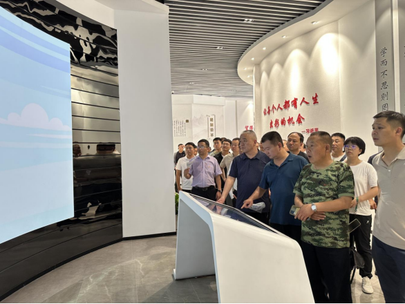 书记做表率,党员当先锋。在雷山村,党支部书记陈四海带领学员们参观红领乡创基地和共富工坊时提到:“发展产业要有团队,不能光杆司令”,要想做好村集体经济,带领群众致富,一个团结敢当的班子必不可少。在紧固件工匠研修室“共富工坊”,墙上的“红匠领航”党建联建内容十分醒目,引人驻足,几位街道党工委副书记、组织委员们热烈交流,表示要把这些好的基层党建经验带回去,结合自身实际,扎实推进“五星”支部创建,加快“五星工坊”建设,以党建联建力促产业发展、乡村振兴。
