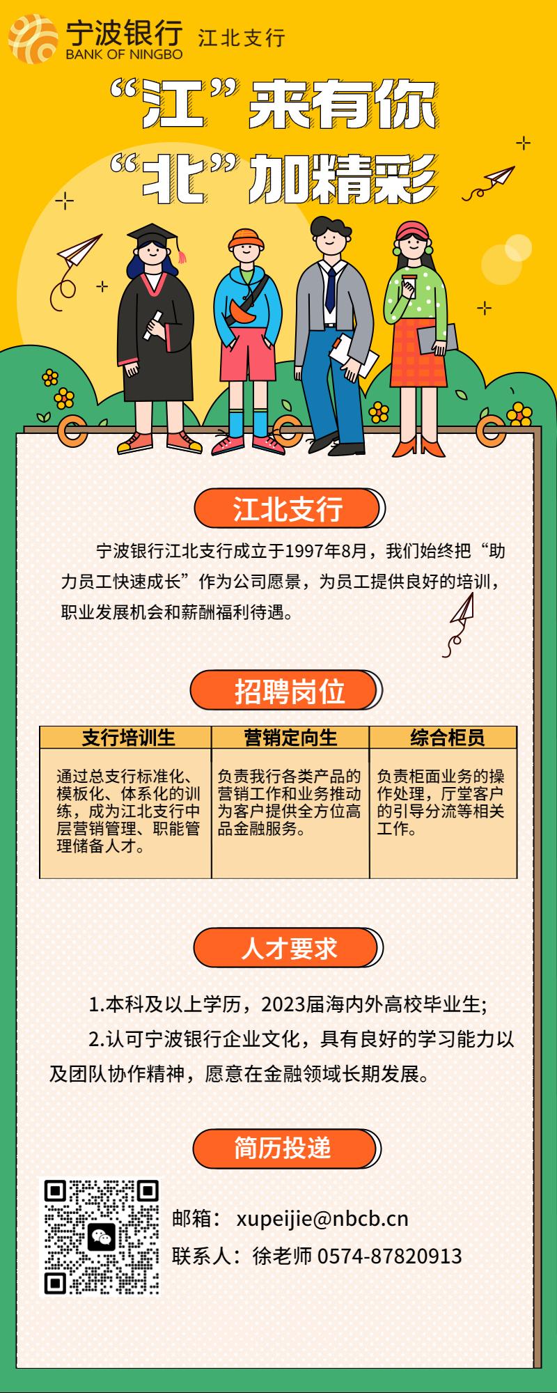 “江”来有你 “北”加精彩宁波银行江北支行招聘简章