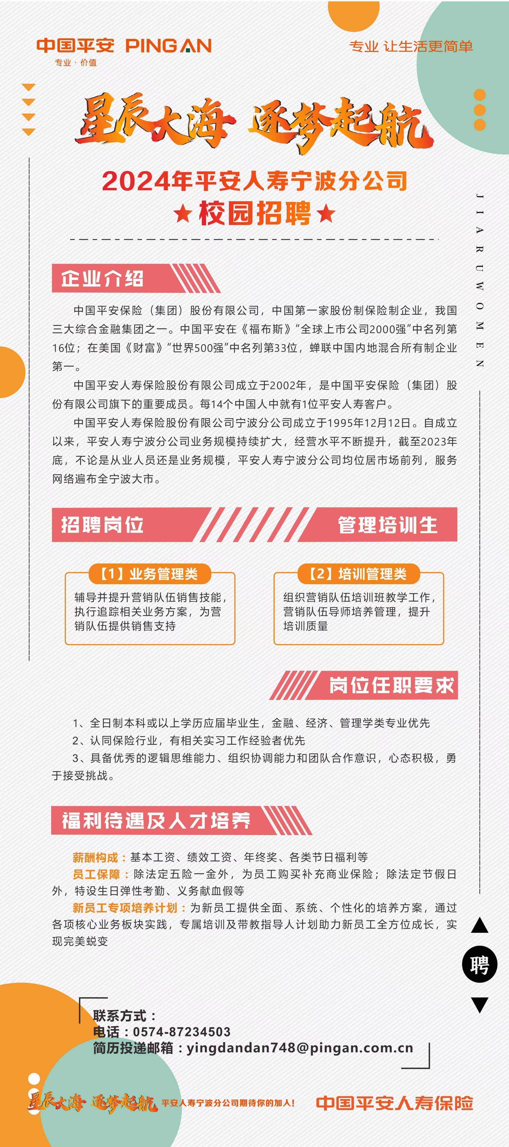 平安人寿宁波分公司2024年校园招聘简章