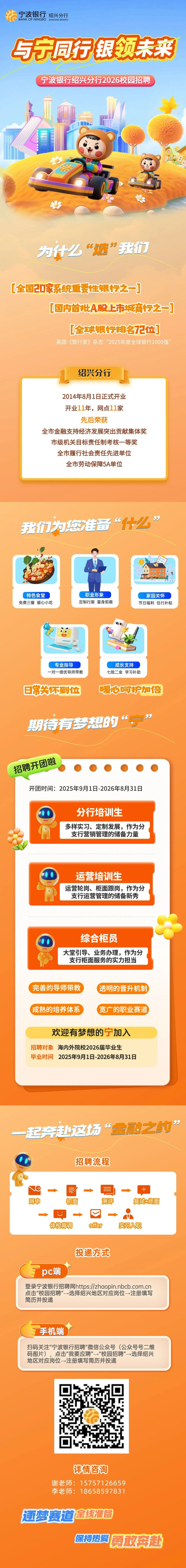 宁波银行绍兴分行校园招聘简章