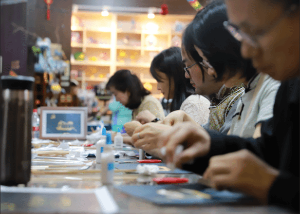 在光影鎏痕党史馆内,全体党员再次回顾了中国共产党建党以来艰苦卓绝的奋斗史,并参与了《非遗红船麦秸画制作》沉浸式体验。麦秸画是浙江省非物质文化遗产,以麦秆为材料,通过剪、贴、烫等工艺创作出栩栩如生的画作。裁剪麦秆、拼接粘、贴熨烫定型……每一个步骤都需要耐心和细心。党员们纷纷表示:“亲手制作红船麦秸画,不仅感受到非遗文化的魅力,更深刻体会到‘红船精神’的时代价值。我们要以匠心致初心,在各自岗位上奋勇争先。”