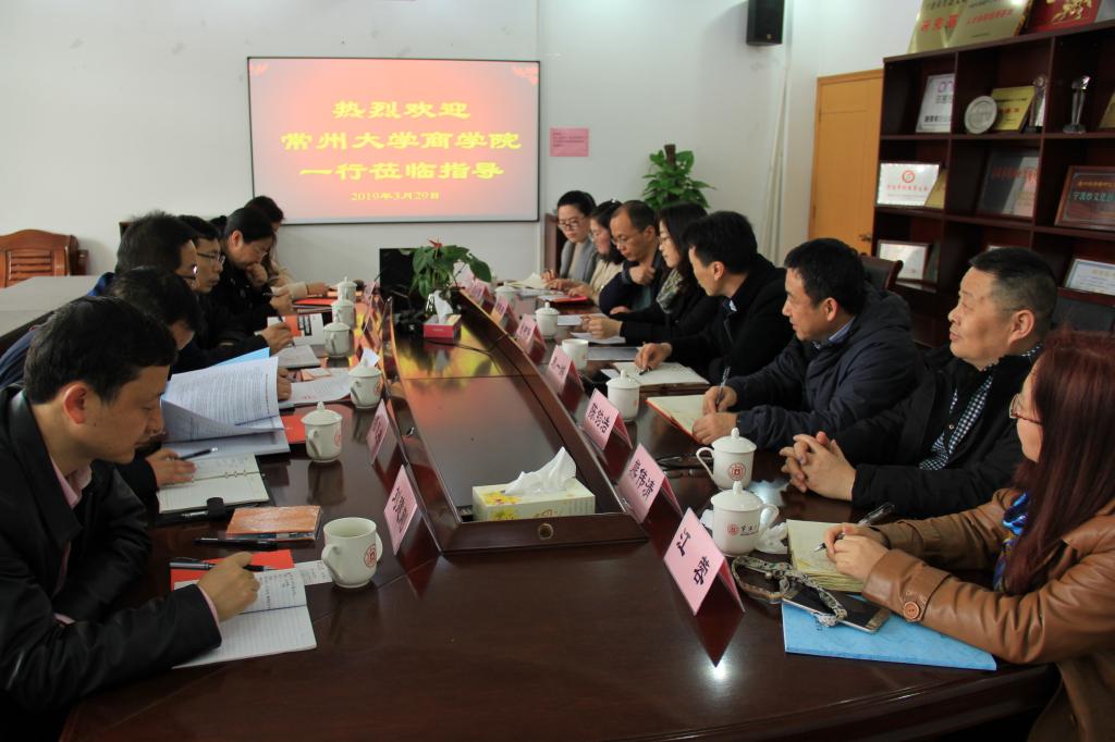 3月29日下午,常州大学商学院教学副院长姜国刚一行6人来访色情av影片 ,学院分管教学工作的协理副院长朱一鸿、 国贸系主任陈钧浩、信管系主任熊伟清、金融系主任刘慧宏、国际工商管理专业负责人钱树静、教务办主任江蓉、留学生教学秘书王小西、留学生辅导员王逸娇出席交流会。