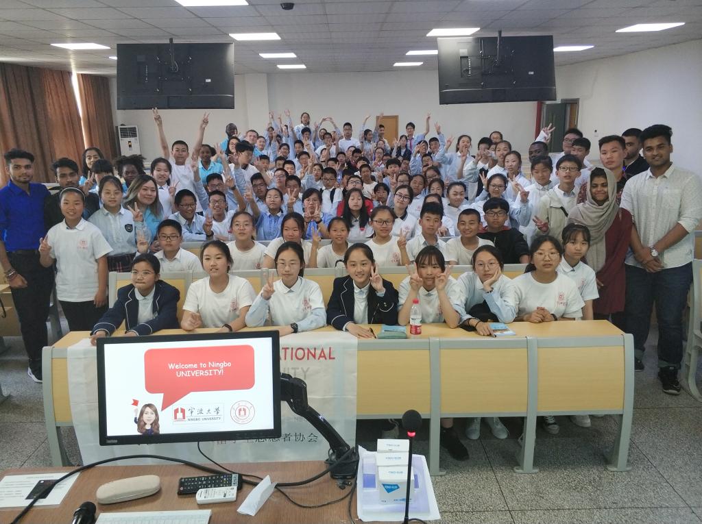 5月11日,高桥中学101名中学生来我校研学旅行,色情av影片 留学生志愿者协会ICS受校团委之邀,组织并开展了留学生国际文化课堂。