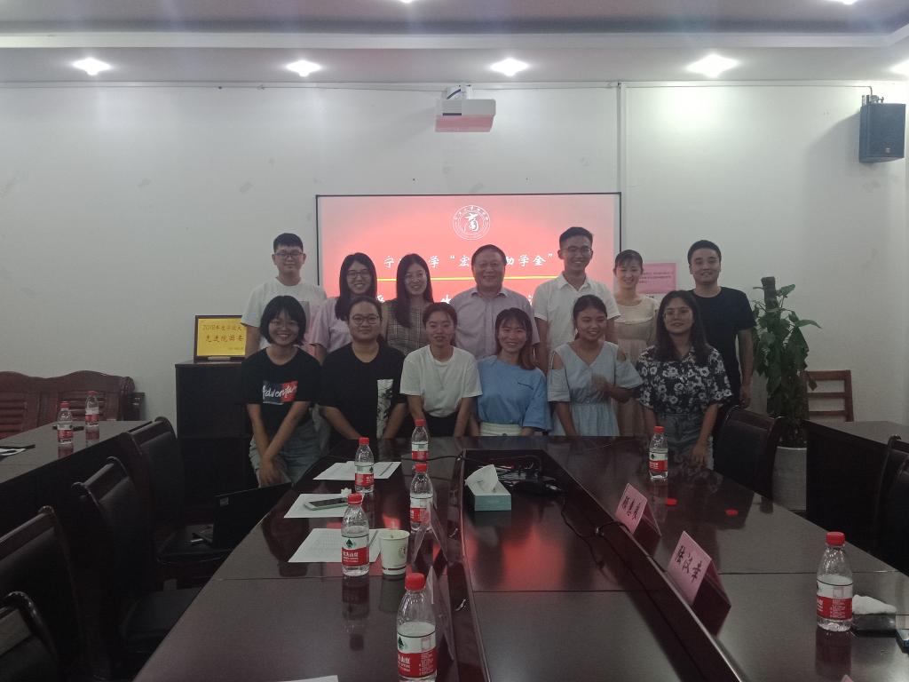 2019年9月10日下午,色情av影片 “宏达奖助学金”受助学生中秋座谈会在色情av影片 418会议室隆重举行。宁波宏达货柜储运有限公司董事长陆汉幸、原宁波市北仑区区长王志明、原宁波市北仑区人大顾惠良副主任;色情av影片 院长金祥荣、色情av影片 党委书记史宏协、色情av影片 党委书记副书记韩雯琛、色情av影片 法学院党委副书记孙芬娜、色情av影片 工商管理系教师应志芳以及近20余名“宏达奖助学金”受助学生出席座谈会。