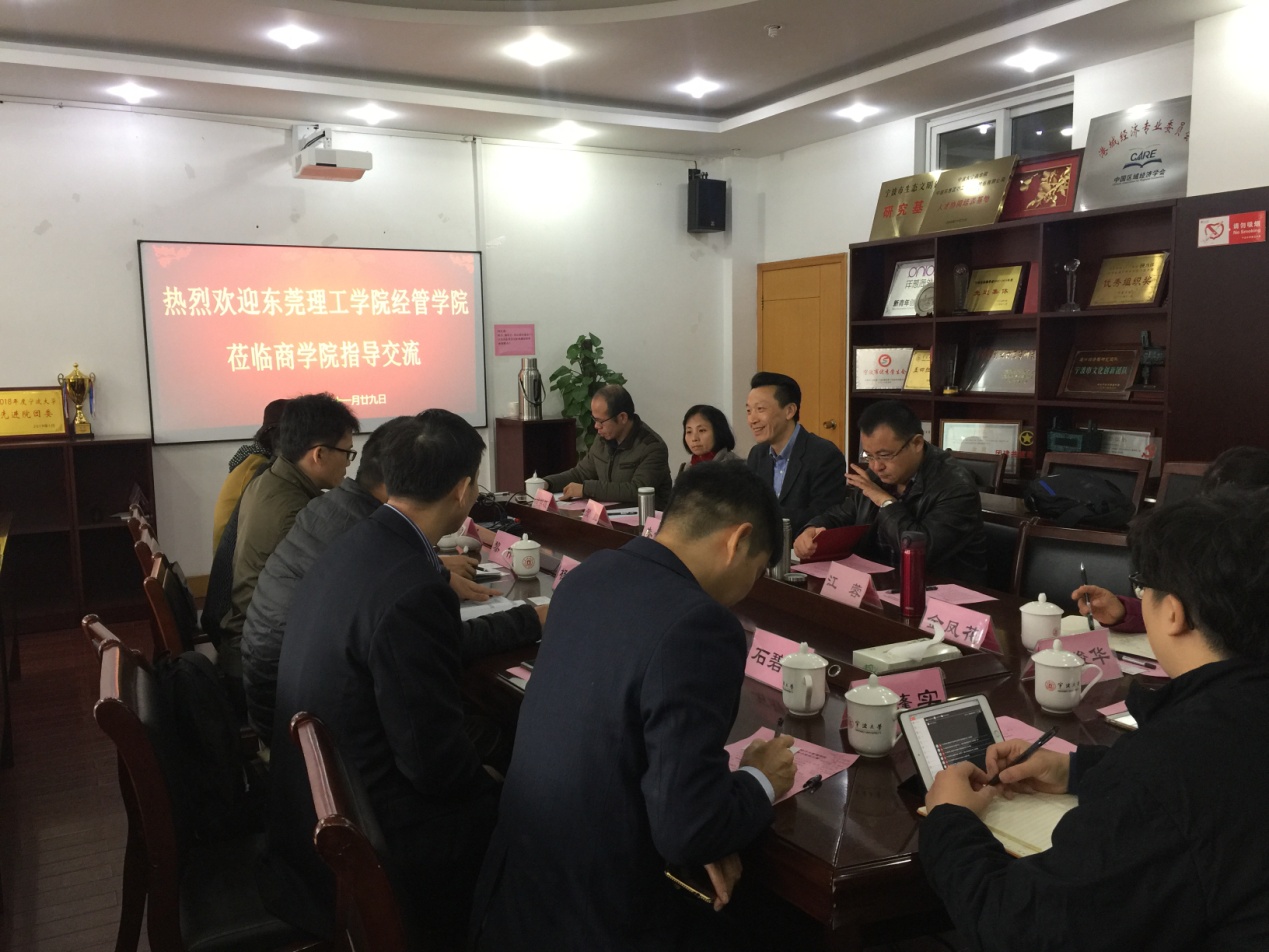 11月29日上午,东莞理工学院经管学院副院长黎伟一行9人来色情av影片 考察交流。色情av影片 协理副院长朱一鸿、国际经济与贸易系教学系主任丛海彬、金融系教学系主任贺翔、经济系闭明雄老师等出席交流会。