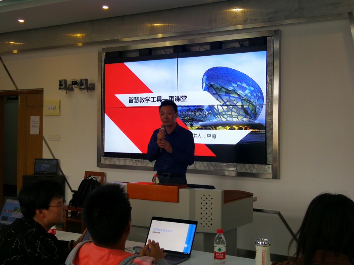 培训中,应勇老师采用实操的方式对“雨课堂”的功能和使用技巧做了详细介绍,重点进行了雨课堂实操演示、互动交流等。参加培训的教师通过扫描二维码进入课堂,实时查看PPT、反馈难点、现场答题并统计、发送弹幕等等,教师们亲身体验了“雨课堂”良好的课堂互动、授课情况的及时反馈,体会到了利用智慧教学手段的方便性与高效性,能较好的调动学生上课积极性,活跃课堂氛围。
