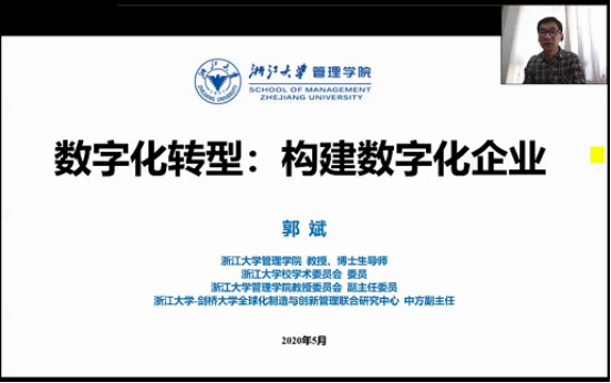 5月24日上午9:00,由色情av影片 MBA教育中心主办 “色情av影片 名人、名嘴、名企”暨第三十四期MBA论坛成功举行。本次论坛很荣幸地邀请到了浙江大学管理学院郭斌教授作为主讲嘉宾,分享主题是《数字化转型:构建数字化企业》。由于疫情原因,本次论坛采有钉钉群直播方式,2019级MBA学员、历届MBA校友及部分师生共150余人参与此次论坛。