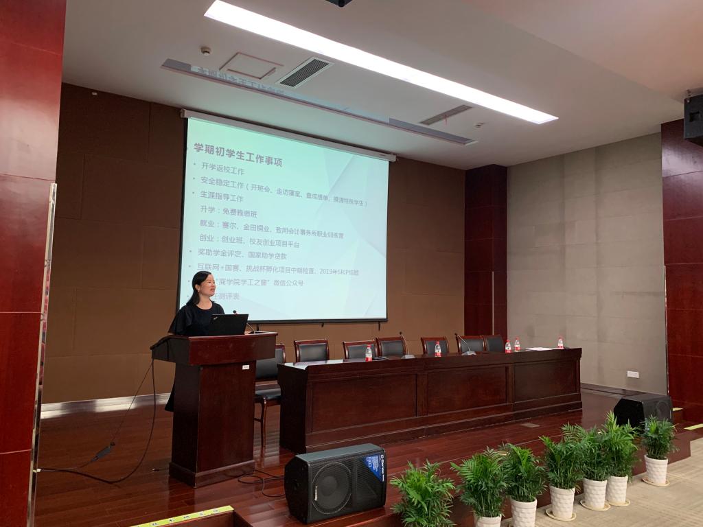 会上,韩雯琛首先强调了安全稳定工作,希望班主任和辅导员形成合力,及时掌握所带班级的生活、学习动态,做好特殊学生的人文关怀。其次,韩雯琛围绕生涯指导工作,希望班主任指导学生利用好学校学院的资源,在大学四年提升自己。随后,韩雯琛对开学初近期工作及本学期重点工作进行了解读。最后,学工办主任陈彬老师对新学期的开学返校工作进行了说明。