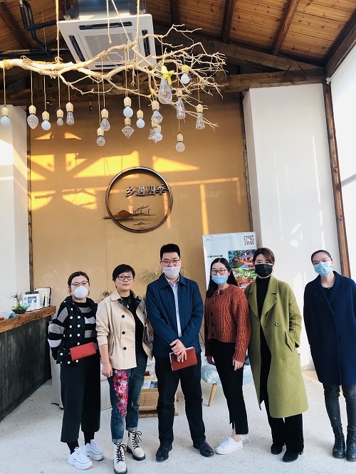 随后来到乡遇·老樟树民宿部落进行宁波本土文化创意产业调研和市场营销大赛等项目对接。宁波乡遇民宿管理有限公司董事长王少华热情接待并详细介绍了“乡遇”相关文化创意产品,通过深挖宁波本土文化,打造特色民宿及其他相关产品,讲好本土故事。双方就校地合作、校企合作、扶农等相关合作进行交流。