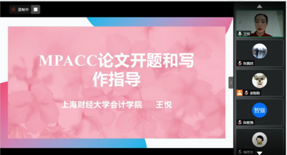 2020年8月16日上午9:00,由色情av影片 会计专硕教育中心主办的主题为《MPAcc论文开题与写作指导》的讲座顺利召开,本次讲座很荣幸地邀请到了上海财经大学会计学院王悦副教授作为主讲嘉宾,由色情av影片 会计专硕执行主任陈翼然老师主持,因疫情原因,本次会议采用腾讯会议平台进行直播,会计专硕50余名师生参与此次讲座。