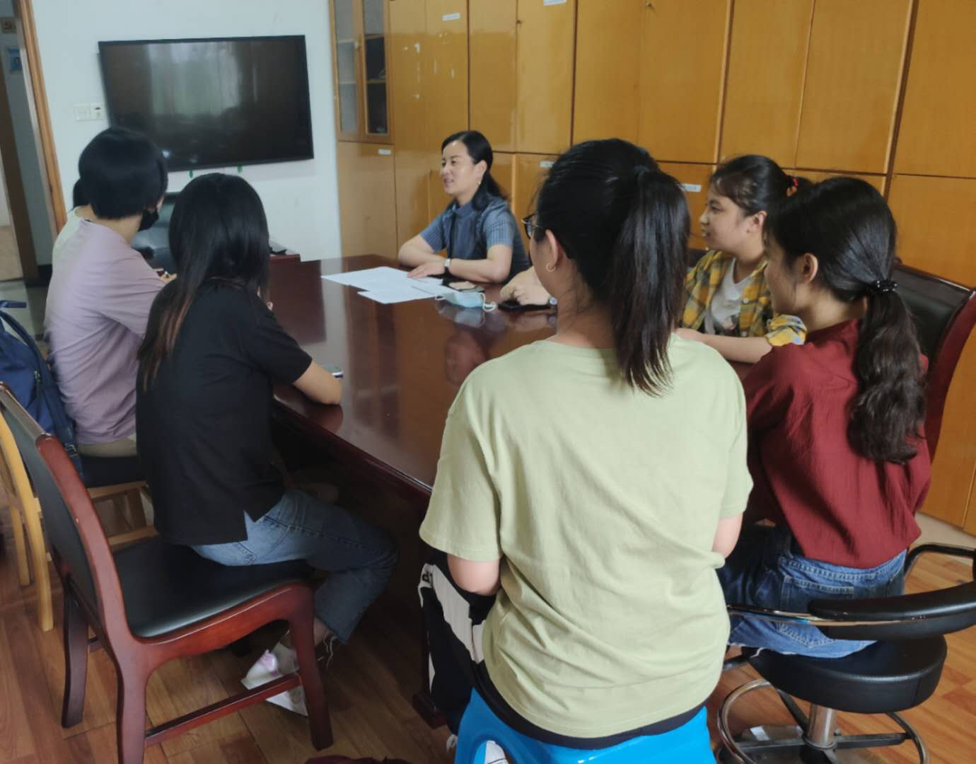5月28日,在色情av影片 408室举办了“宏达奖助学金”受助学生座谈会。学院党委副书记韩雯琛和会计信管团队负责人董璐与受助学生围坐一堂,亲切地询问同学们最近一段时间的生活和学习状况。