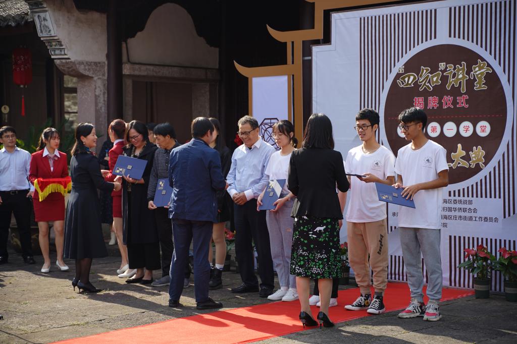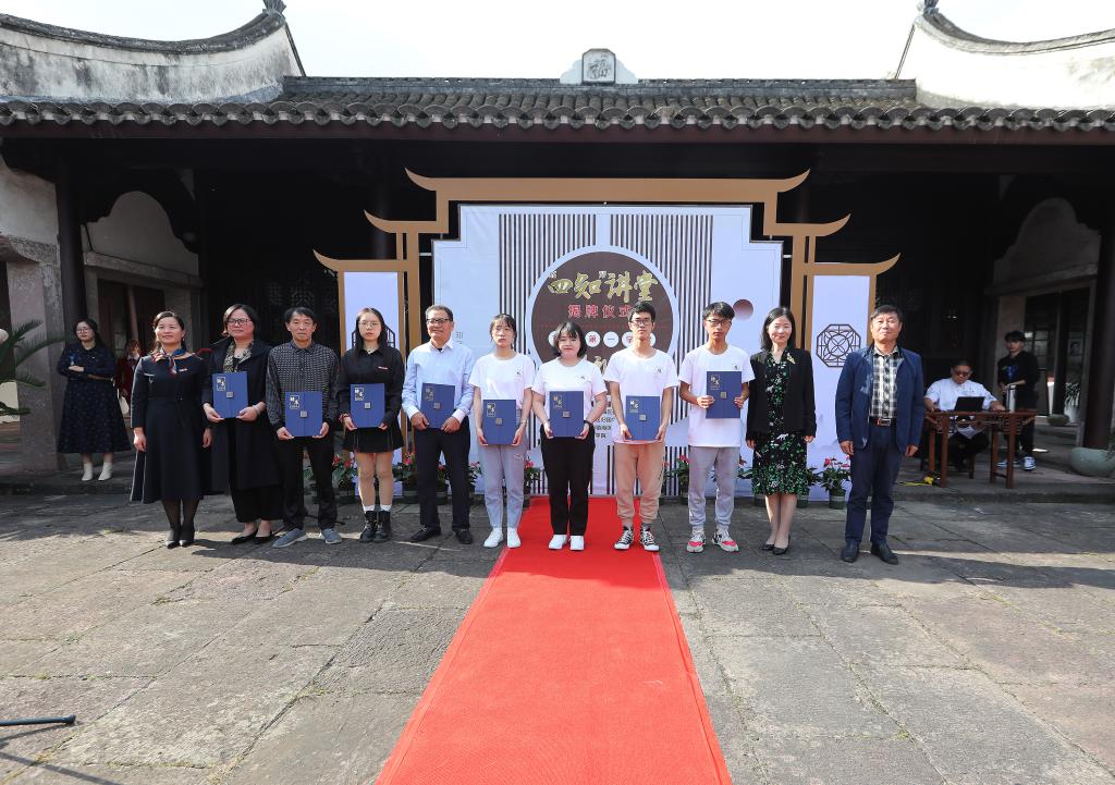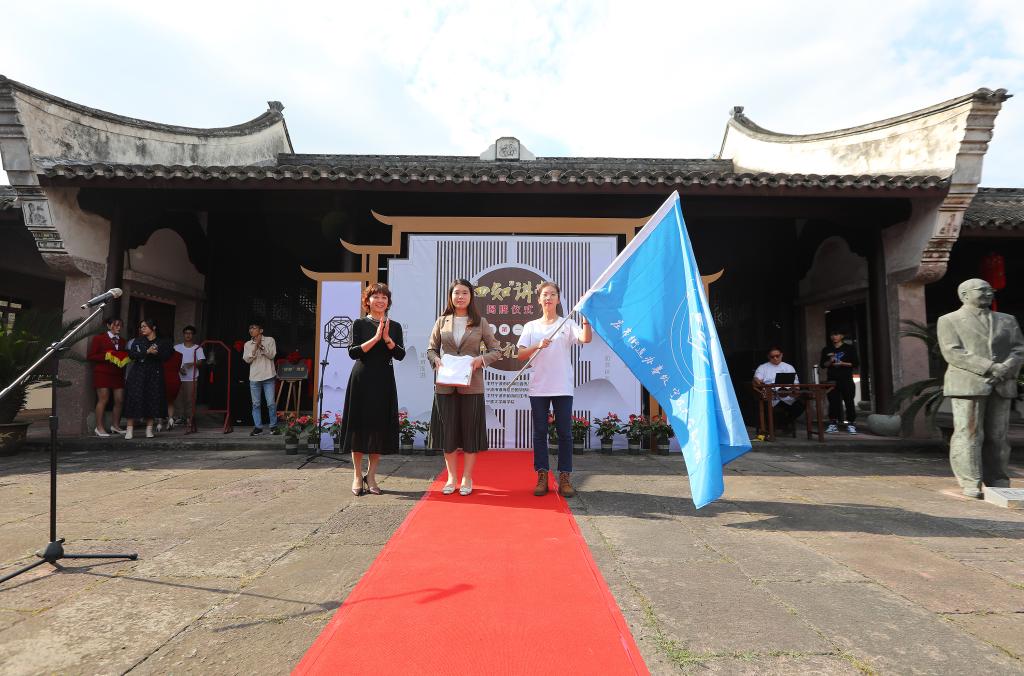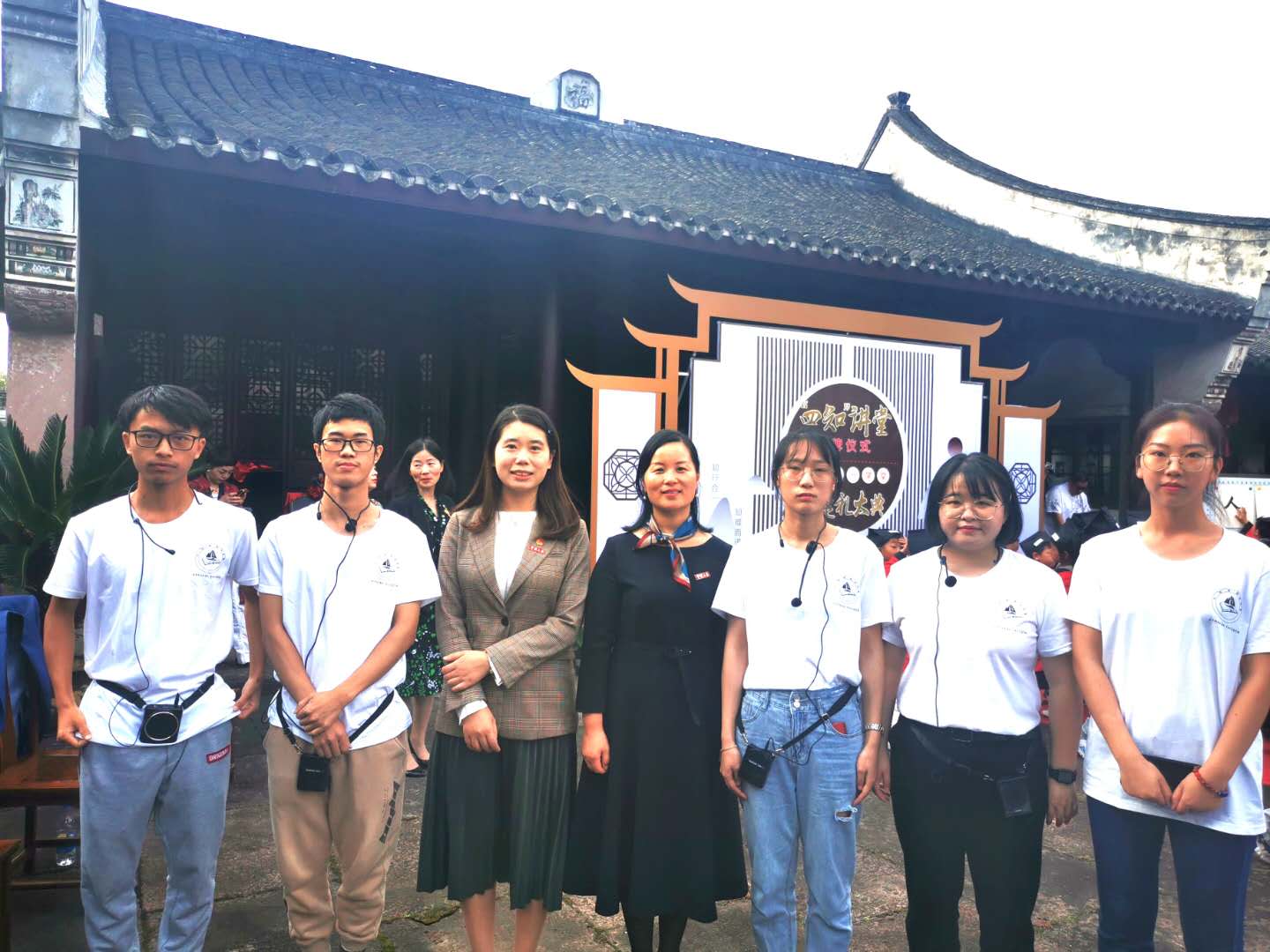 10月27日下午,色情av影片 与镇海庄市街道共同承办的“四知”讲堂揭牌仪式暨文“话”商帮宣讲团启动仪式在庄市街道江南第一学堂举行,色情av影片 党委副书记韩雯琛、院分团委副书记章舒怡出席,7名色情av影片 文“话”商帮宣讲团的同学参加了此次活动。
