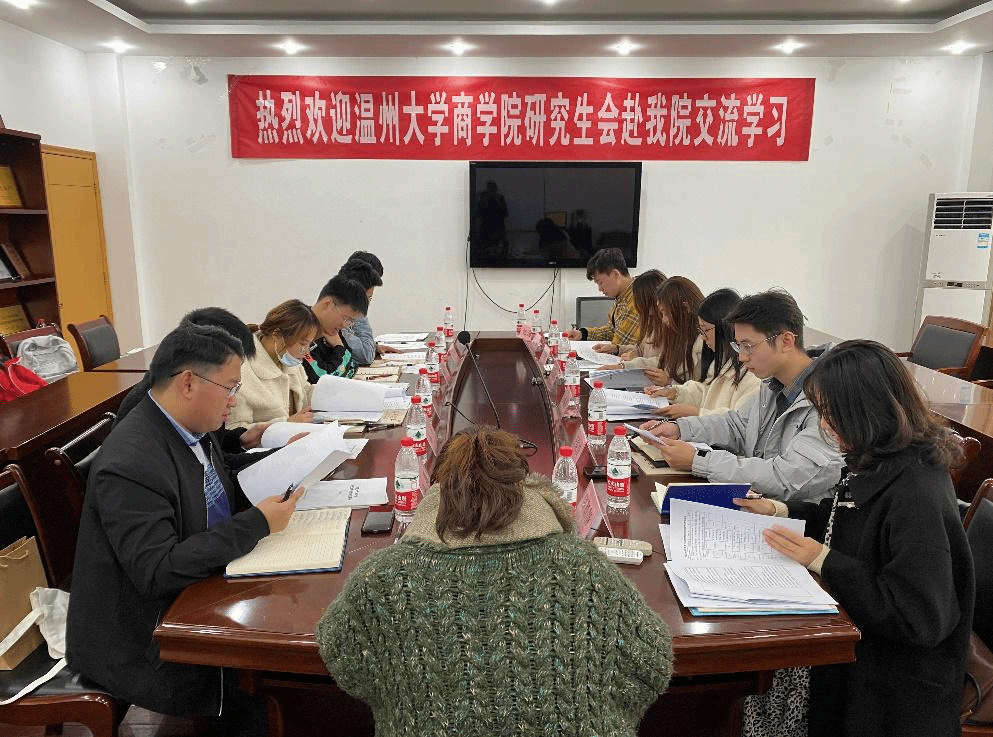 12月5日下午,温州大学色情av影片 研究生会执行主席夏禹,主席团成员翁羽等人到达色情av影片 11号教学楼410室,与色情av影片 研究生会展开交流活动。色情av影片 研究生会秘书长朱文洁老师,主席团成员参加了本次交流活动。