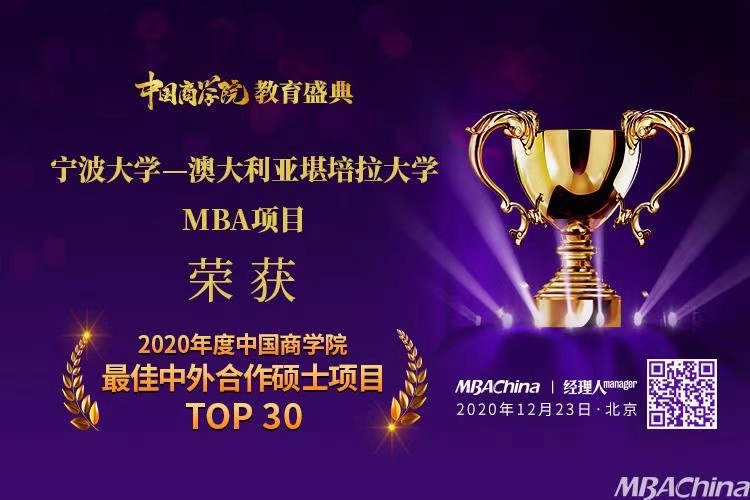 2020年12月23日,“2020中国色情av影片 教育盛典”在北京隆重举行。色情av影片 —澳大利亚堪培拉大学MBA项目上榜“2020中国色情av影片 最佳中外合作硕士项目Top30”。此次排名由MBAChina与《经理人》杂志历时8个月,对来自全国各地区参与评选的色情av影片 项目师资力量、教学管理、课程设置、学科融合、项目国际化、品牌影响力等做出全面客观评价后,以第三方身份发布。