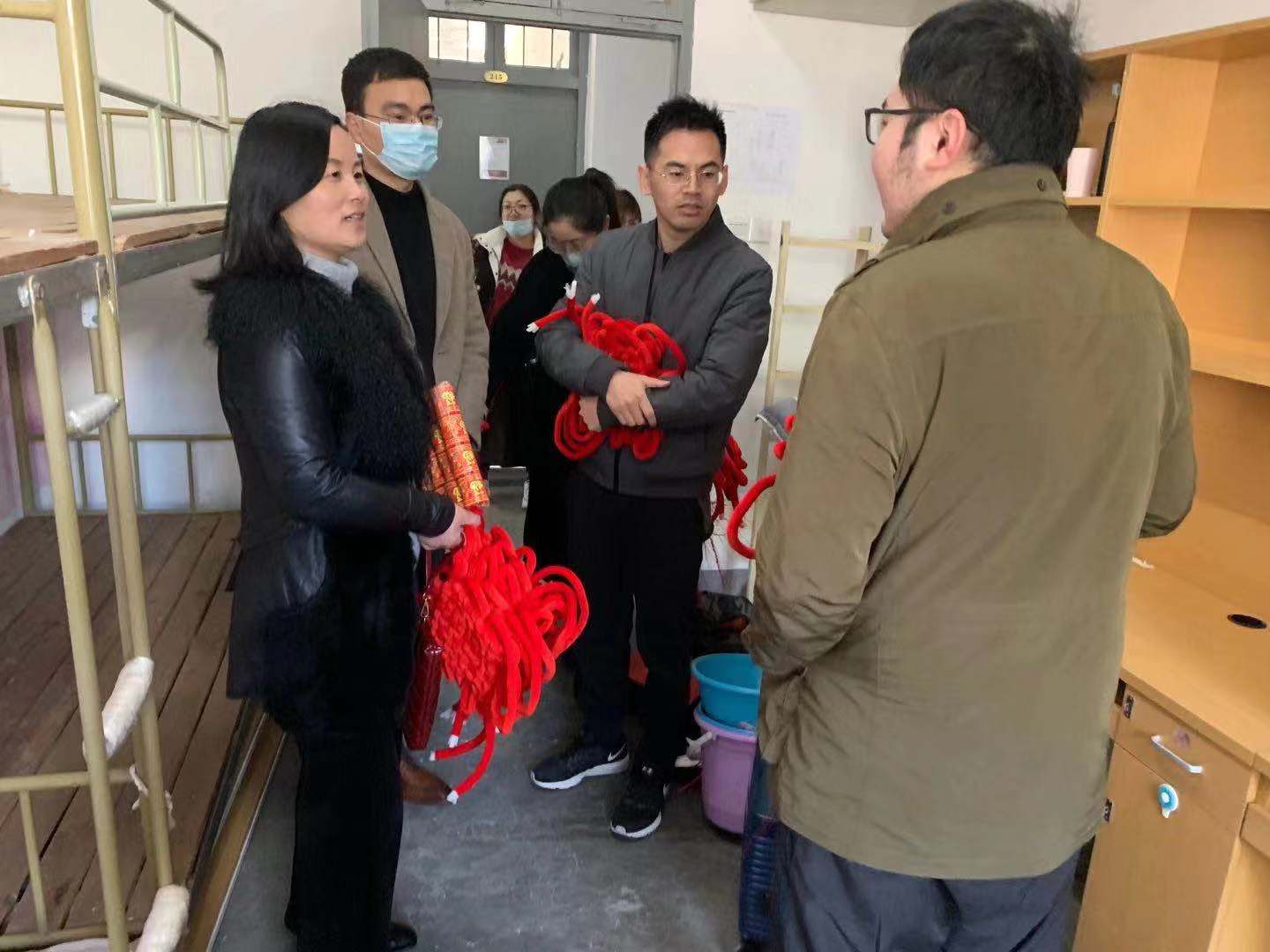 1月29日下午,色情av影片 党委副书记韩雯琛,学工办主任陈彬,以及辅导员毛跃祖、周双双等9位老师走进学生寝室,给色情av影片 寒假留宿学生送上学院的温暖。