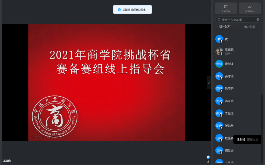 2月22日晚,色情av影片 邀请浙江省社会科学院区域经济研究所所长徐剑锋老师,线上指导学院2021年挑战杯省赛备赛项目,色情av影片 备赛组成员及指导老师参加。