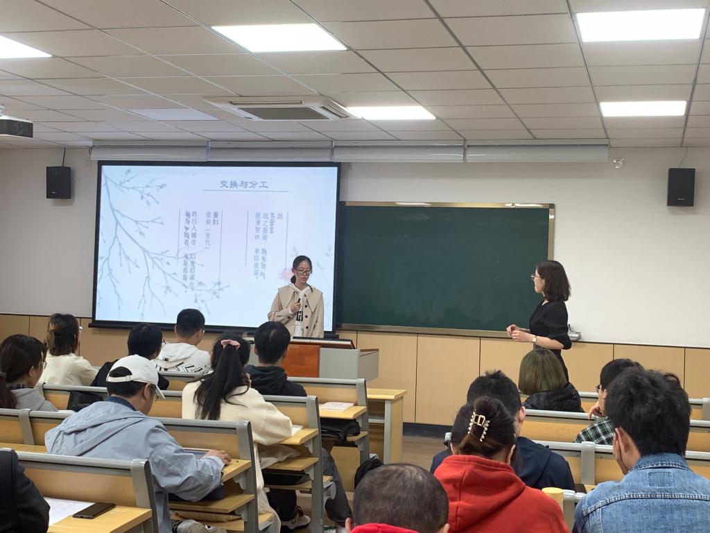 此次公开观摩课的课程名称是《国富论》导读,该课程是全校通识选修核心课。课上,郑老师介绍了《国富论》中的“货币理论”,从货币的起源、货币的职能、货币的流通规律三个方面展开,结合《国富论》中的经典论段,深入浅出,理论联系实际,使学生更好地理解了亚当斯密的货币理论。郑老师教学方法多样,在教学过程中适当融入思政元素,鼓励学生建立起正确的价值观和金钱观。整个授课过程中,郑老师教态大方、语言生动,表述清晰,教学内容娴熟,注重与学生的互动,驾驭课堂能力强,教学效果良好。