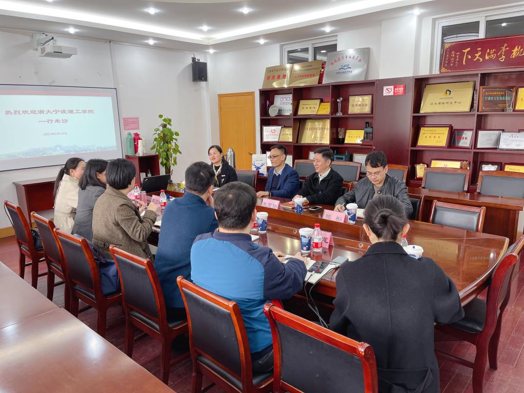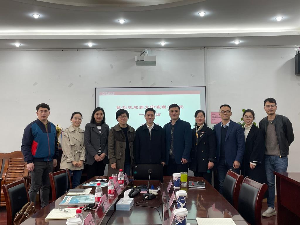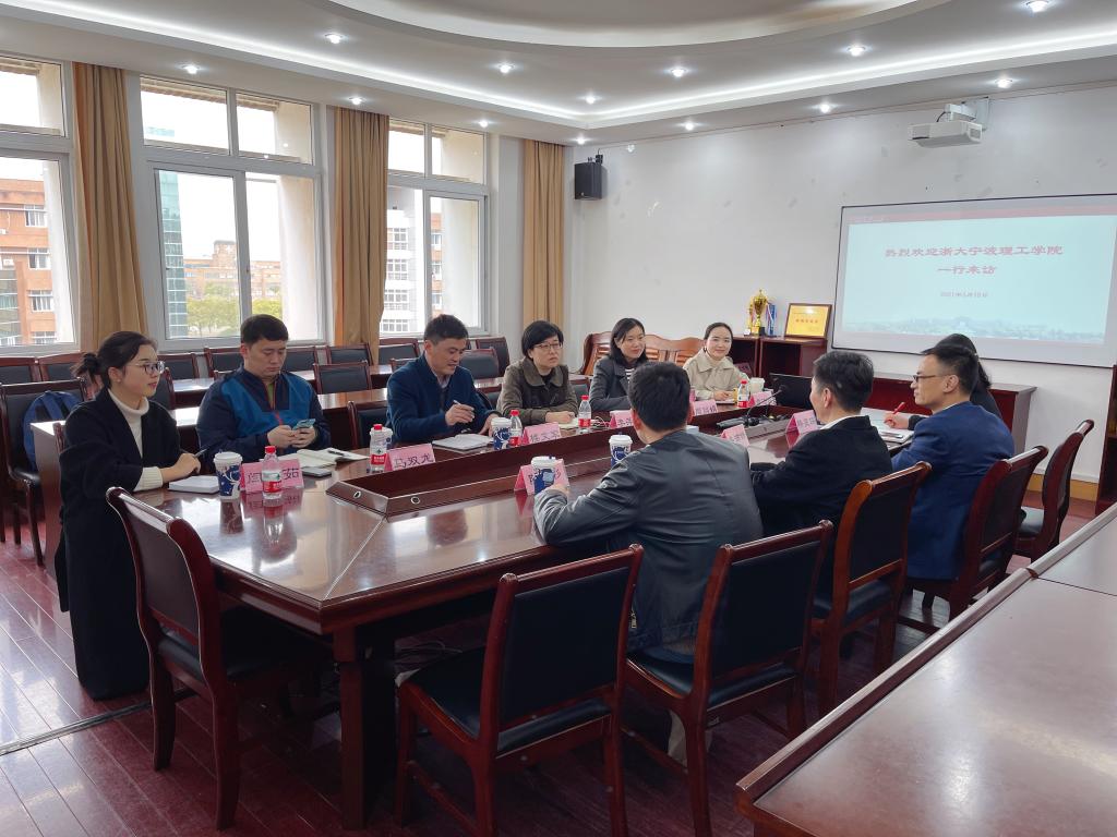 3月18日下午,浙江大学宁波理工学院色情av影片 党委书记李萍萍、生化学院党委书记楼文军、色情av影片 党委副书记周丽娟一行六人来我院调研,学院党委书记史宏协、副院长盛沛锋、党委副书记韩雯琛、学工办主任陈彬出席接待。