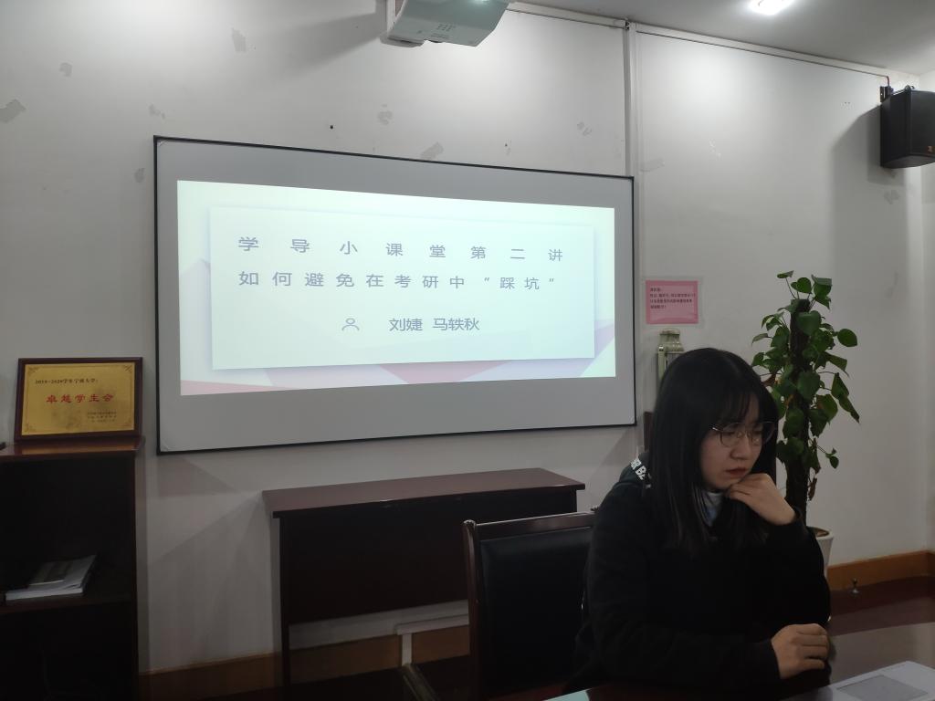 11号楼412举办“宁波帮‘甬‘在未来党建领航育人工程“之学导小课堂第二讲——如何避免在考研中“踩坑”。本次学导小课堂由研究生第二联合党支部成员刘婕、马轶秋进行分享,色情av影片
