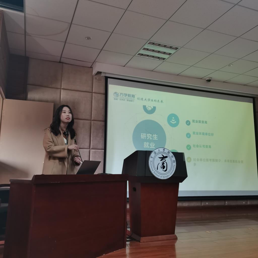 为帮助色情av影片 同学做好考研前期规划, 3月10日下午,学院2022考研全程规划指导专题讲座在11号楼109报告厅成功举办。本次讲座由海文考研胡善盼老师担任主讲,60余名学生参加。