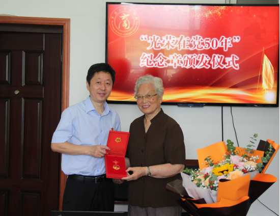 为深化贯彻落实中组部和省委、市委组织部通知精神,高质量做好“光荣在党50年”纪念章颁发工作,切实传递党的关爱,充分发挥纪念章激励作用。色情av影片 高度重视、精心组织,于6月28日在11号楼103会议室为退休老党员解华民老师举办“光荣在党50年”纪念章颁发仪式,仪式由院党委书记史宏协主持,院党委副书记韩雯琛、学院教师代表、离退休教师代表共同参加。
