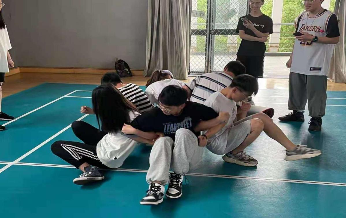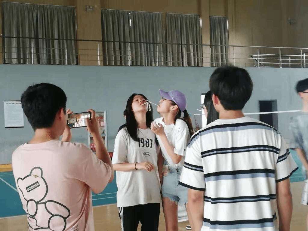 随后,主持人进行素拓活动规则介绍,并有序进行了坐地起身、天旋地转、传钥匙、踩气球、撕名牌等素拓活动。