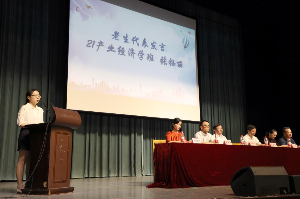 17级经济学专业的张钰丽作为老生代表发言,她告诫学弟学妹们在大学学习中,首先要认识自身、设立大目标,其次需学会合理安排时间,最后还要注重品德培养,热心公益。接着,陆智强代表全体新生班主任,提出了对色情av影片 新生的诸多期望,希望同学们担少年之责,抱爱国之怀,做求是创新的商院人,立大志而成大器。
