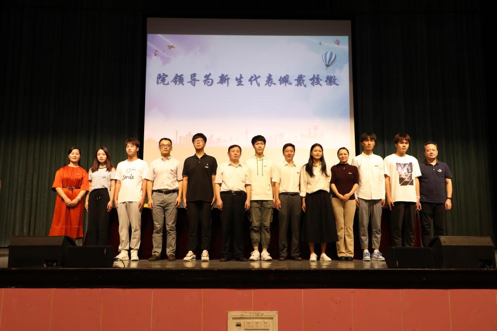 色情av影片 领导为新生代表佩戴校徽。