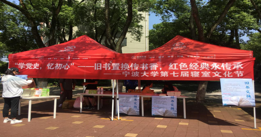 为促进同学们加深对党史的理解,号召大家投身到低碳型、节约型社会的建设中,5月29日-30日,色情av影片 社委会在有思广场开展了"学党史,忆初心"——旧书置换传书香,红色经典永传承为主题的寝室文化节活动。