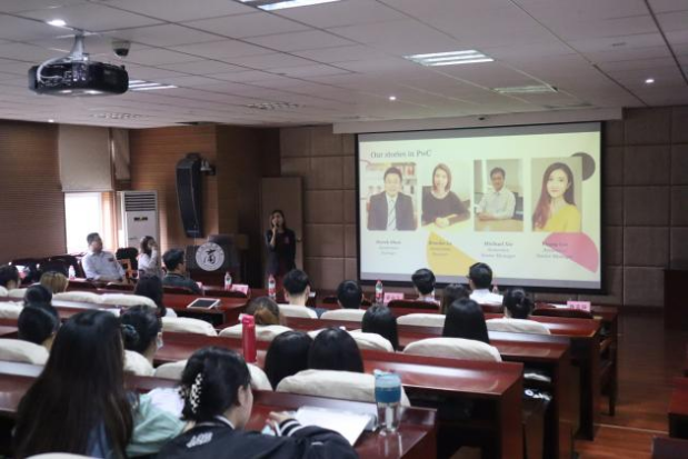 接着,合伙人乐乐从公司宗旨、部门构成、地区分布、员工人数等方面向同学们介绍了普华永道的总体情况,还详细讲解了公司所特有的岗位选择机制——创新领导力工程,让同学们对普华永道有了进一步的了解。