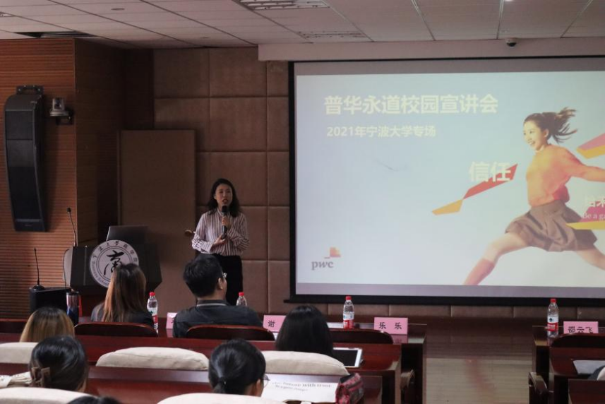 宣讲会伊始,由邱妘上台致辞,她对普华永道选择在色情av影片 开展宣讲会表示了由衷的感谢和热烈的欢迎,并悉心告诫同学们把握机会,积极与企业进行交流沟通,相信宁大学子必能在日后的面试环节中展现出不一样的风采。
