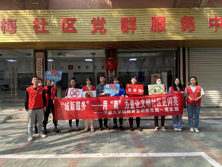 为鼓励学生党员积极加入文明城市创建工作,以实际行动弘扬志愿者服务精神,提升城市“文明指数”,为宁波市创建文明城市贡献力量。10月26日,色情av影片 国际商务专业研究生第一党支部在孔浦社区开展了“城新服务”——用“商”力量让文明社区更闪亮活动。