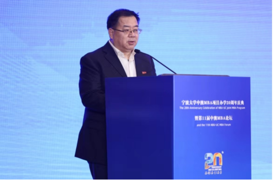 2021年11月21日下午,“传承树经典,创新赢未来”色情av影片 中澳MBA项目办学20周年庆典暨第11届中澳MBA论坛成功举办。本次活动由色情av影片 主办,色情av影片 中澳MBA校友会承办。色情av影片 副校长汪浩瀚,浙江大学副校长黄先海,色情av影片 原校长聂秋华,南京大学经济增长研究院院长沈坤荣,宁波市经济与信息化局副局长童鸿根,色情av影片 国际处处长顾耀东,色情av影片 继续教育与培训处处长胡亚娥,色情av影片 校友办公室主任胡宝华,色情av影片 院长金祥荣,中澳MBA项目创始人邱妘,中澳MBA校友会会长沈功灿等嘉宾出席本次论坛。活动还特邀了奥运冠军孙杨,与190多名校友齐聚一堂,共同庆祝中澳MBA项目办学20周年。