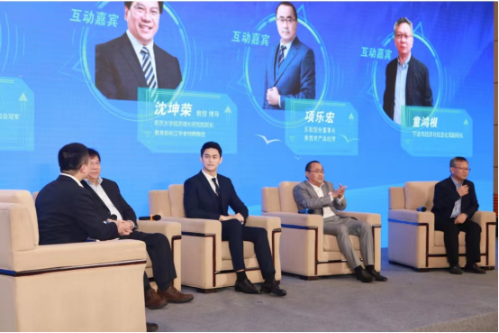 第二场圆桌论坛以“后疫情时代的机遇与挑战”为主题。由色情av影片 国际处处长顾耀东教授主持,奥运冠军孙杨、南京大学经济增长研究院院长沈坤荣教授、乐歌集团董事长项乐宏和宁波市经济和信息化局副局长童鸿根在现场参加了讨论。沈坤荣教授分享了产业要顺应时代潮流需求而转型,未来健康产业会更为迅速发展。童鸿根副局长分享了制造业人的使命与担当,并且表达了对宁波企业发展的信心与展望。奥运冠军孙杨对后疫情时代的体育产业发展与体育消费分享了自己的看法。最后项乐宏董事长以自身企业为例,分享了后疫情时代改变商业模式与提升品牌附加值的重要意义。