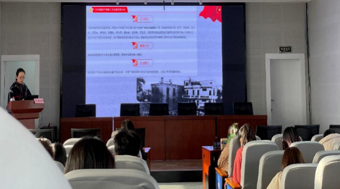 短暂的休息过后,开始进行下一个讲座。在讲座开始时,吕承烨先为学员们展示了中共一大的历史影片,通过影片介绍,学员们进一步了解了中国共产党诞生之初的那段历史。随后,吕承烨一一为学员们讲解了中共三大,四大到十九大的重要内容和历史意义,通过对这些会议的梳理讲解,向学员们展示了中国共产党一路走来的光辉历史。