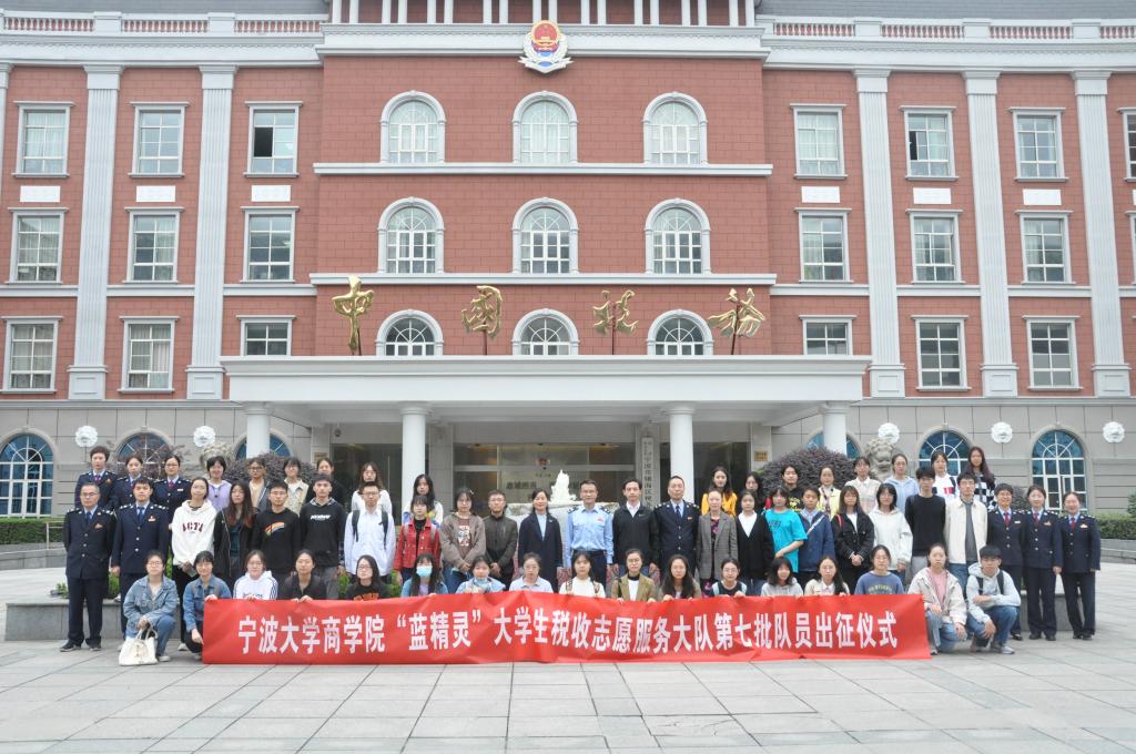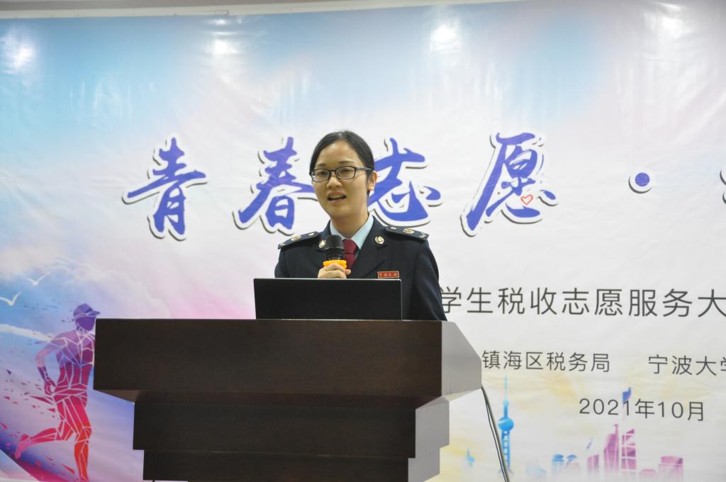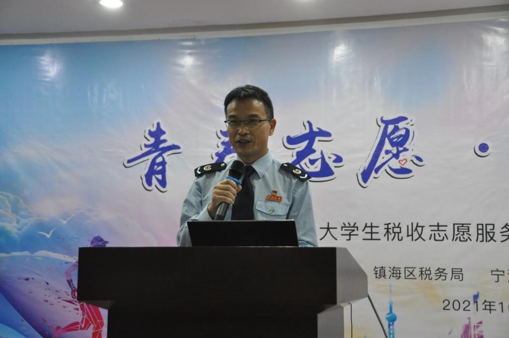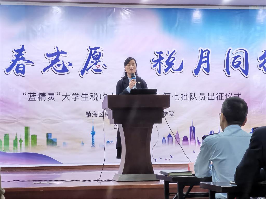11月3日,色情av影片 “蓝精灵”大学生税收志愿服务大队第七批队员出征仪式在国家税务总局宁波市镇海区税务局举行。宁波市税务局纳税服务处副处长董如峰、镇海区税务局副局长屠晓军、镇海区税务局纳税服务科科长方锐和色情av影片 党委副书记韩雯琛、本科生第六党支部书记董璐受邀出席,镇海区税务局纳税服务科及各税务所业务骨干和“蓝精灵”大学生税收志愿服务大队第七批队员代表50余名同学参与此次活动。