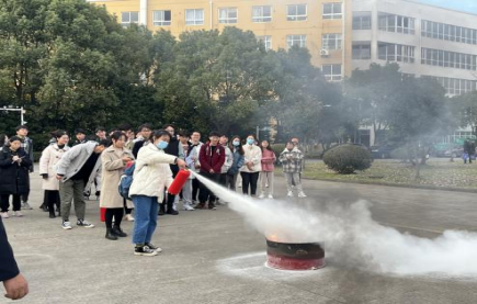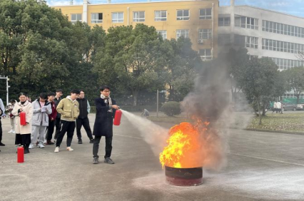 为了使同学们更好理解灭火器的使用方法,现场准备了柴油桶、柴油等道具。徐作义在演练道具柴油桶中倒入引火物和柴油,点火后亲自为大家进行了灭火器使用示范,并详细向现场的同学们讲解了灭火器的构造、使用方法和操作步骤。在随后的模拟演习环节中,在场的同学们积极参与到实践中,亲自上手使用灭火器,体验灭火过程。本次演练的同学们都表示受益匪浅,并表示将把自己所学到的消防知识传授给班级同学。