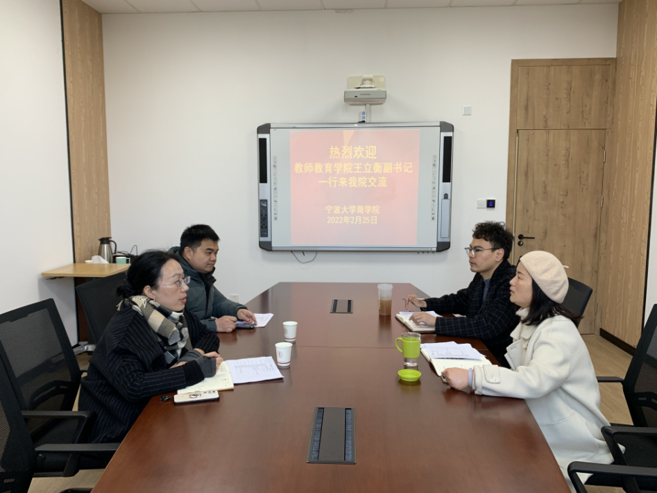 2月25日,我校教师教育学院副书记王立衡、学工办主任范泽平一行来色情av影片 交流学生工作。色情av影片 党委副书记韩雯琛、学工办主任陈彬参与交流。