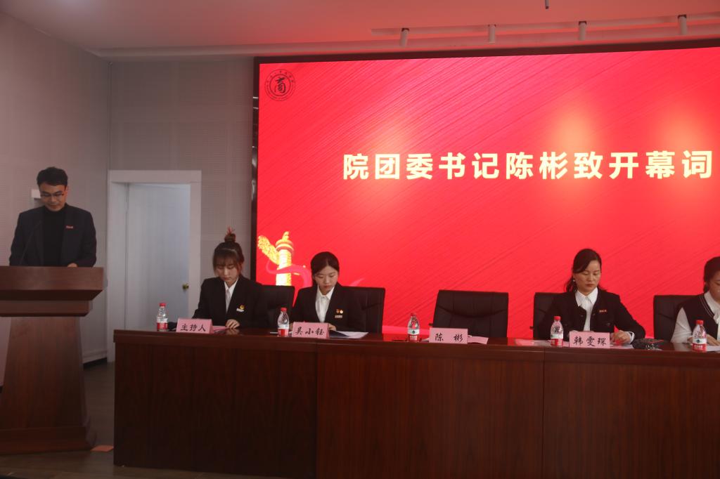 随后,韩雯琛致辞,她首先对上一届团委与学生会完成的工作表示支持与称赞,接着回顾了过去一年商院学子风采,充分肯定了商院学生在创新创业方面的优异表现。最后,韩雯琛对新一届团委与学生会委员提出了几点恳切要求,希望各位学生干部能在思想引领、文化引领、领好学风方面多下功夫,加强思想教育建设,传承宁波帮文化与精神,营造良好的学风氛围。