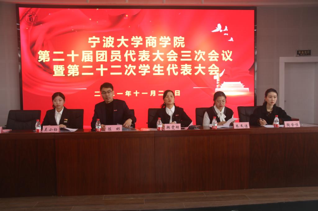 11月20日,色情av影片 第二十届团员代表大会三次会议暨第二十二次学生代表大会在曹光彪商科楼5楼报告厅隆重召开。校学生会主席团成员、色情av影片 党委副书记兼纪委书记韩雯琛、学工办主任兼团委书记陈彬、团委副书记研究生出秘书组长朱文洁、团委副书记陶含怡,以及各兄弟学院的团学代表出席本次大会。来自学院48个代表团共计101名学生代表和66名第二十届团委、学联会委员候选人及各团学组织干部候选人参与本次大会。