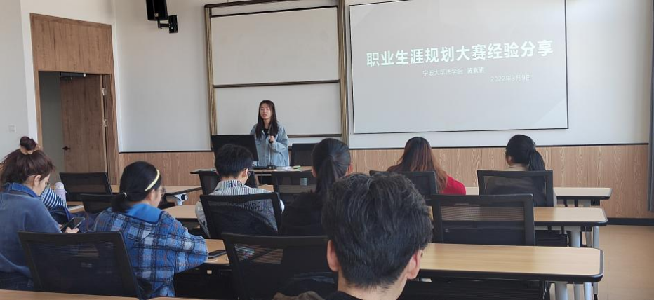首先,黄素素向同学们简单介绍了职业规划大赛,展示了自身的比赛经历与作品,并以此展开详细地为同学们讲解了比赛的规则、流程以及需要的准备工作。她总结到,职业规划大赛是能力的锻炼,也是自我定位的明确与职业路径的验证,更是一次难忘的成长体验。同时,她以自己的职业规划书为例,详细讲解了职业规划书各个模块的写作,指出同学们可以收集学科竞赛、获奖证明、社会实践等各个方面的素材来充实与完整职业规划书。最后,她鼓励同学们大胆尝试、积极参与,深入思考过后找到一条最适合自己的职业路径,预祝同学们在比赛中都能大展身手,赛出好成绩!