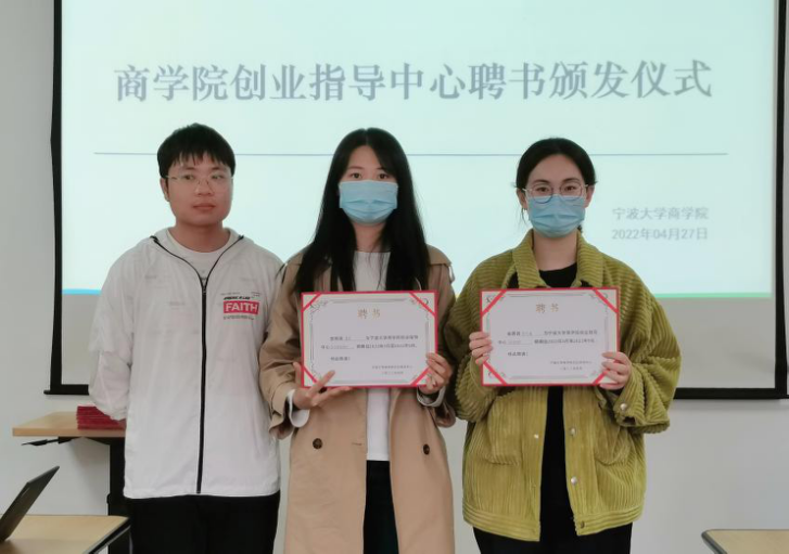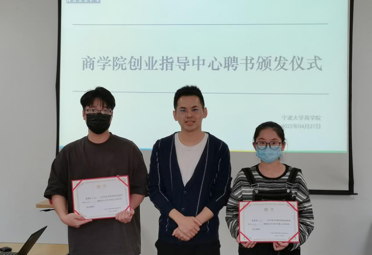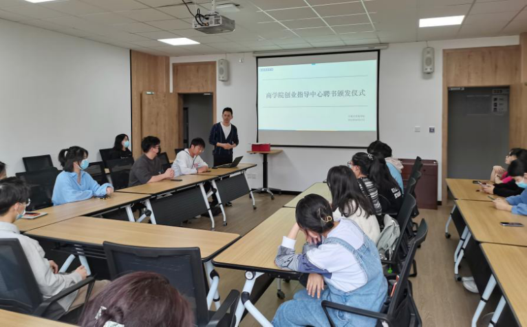 4月27日下午,色情av影片 创业指导中心聘书颁发仪式在曹光彪商科楼320顺利举行。中心指导老师毛跃祖、秘书长钟冬冬以及创业指导中心全体成员出席了本次仪式。