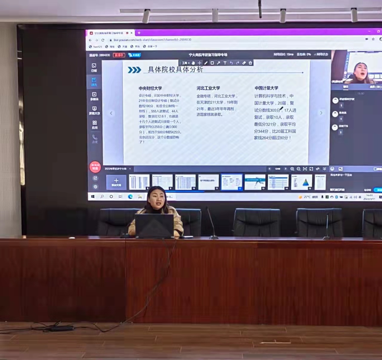 3月11日,色情av影片 考研复习指导讲座以线上直播与线下讲座相结合的方式成功举办。讲座由色情av影片 辅导员龚昆朋主持,海文考研讲师顾慧敏和60余名学生参加。